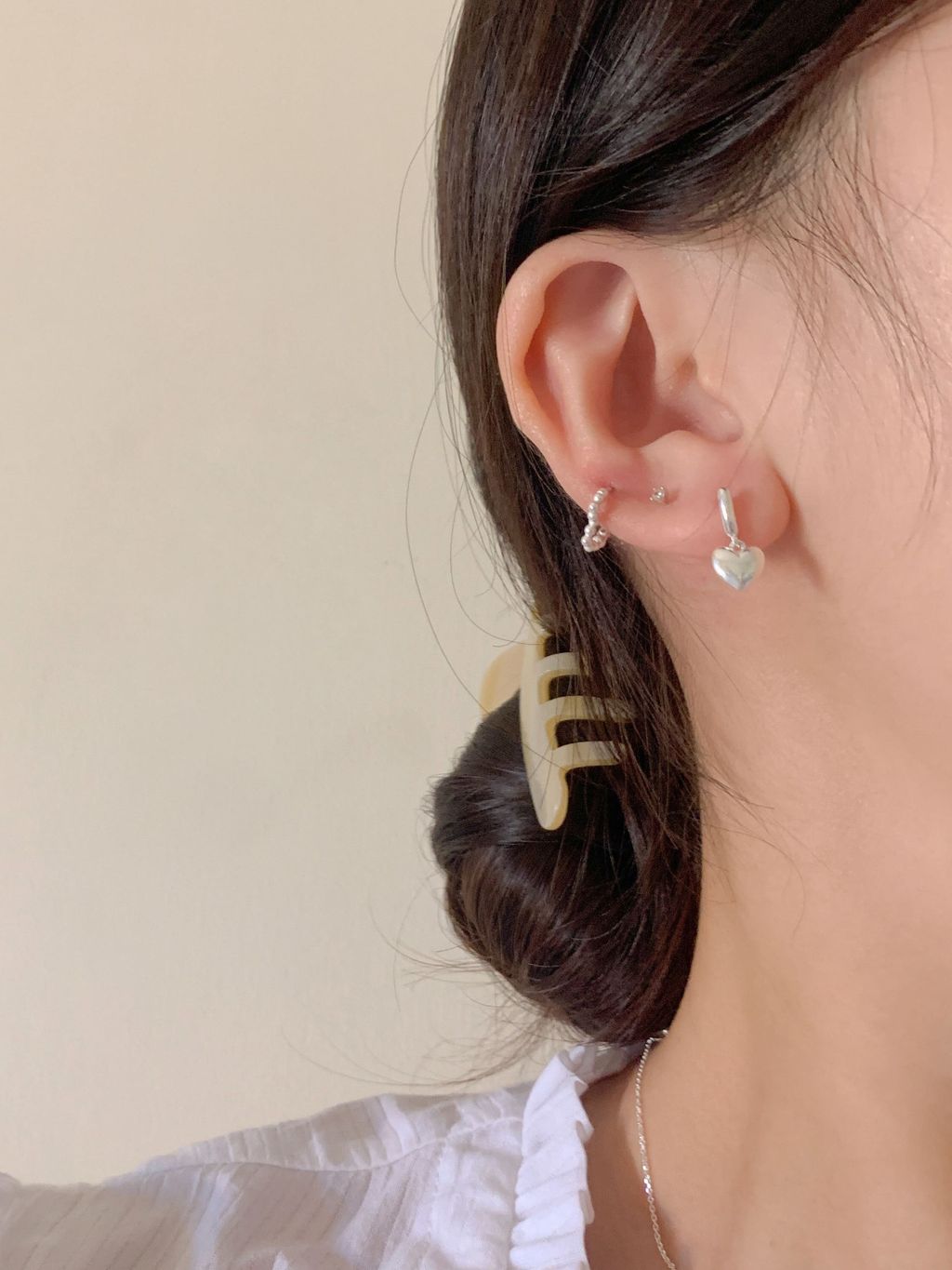 耳扣款式,配戴時請輕輕的打開扣環,因純銀質地較軟